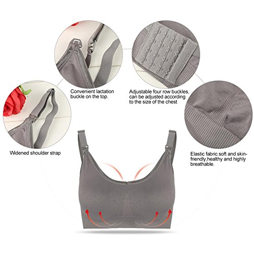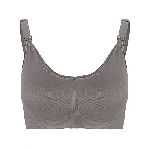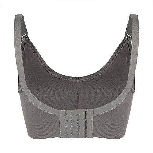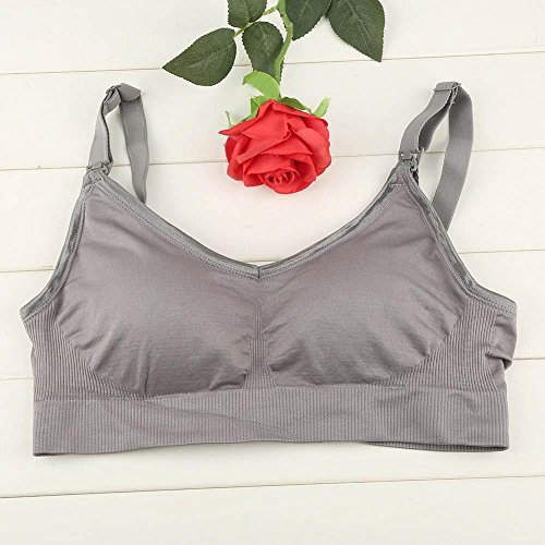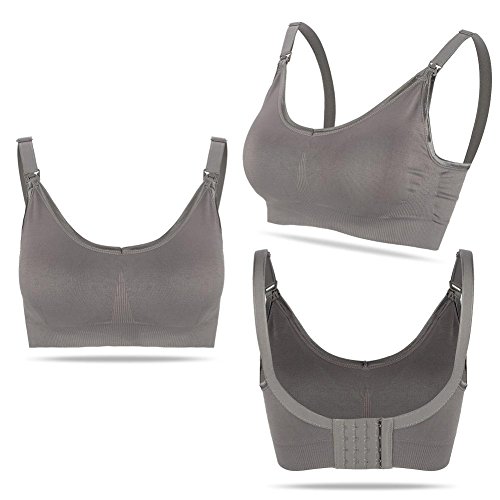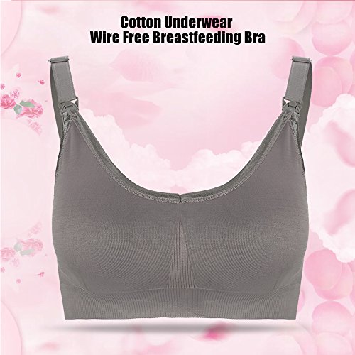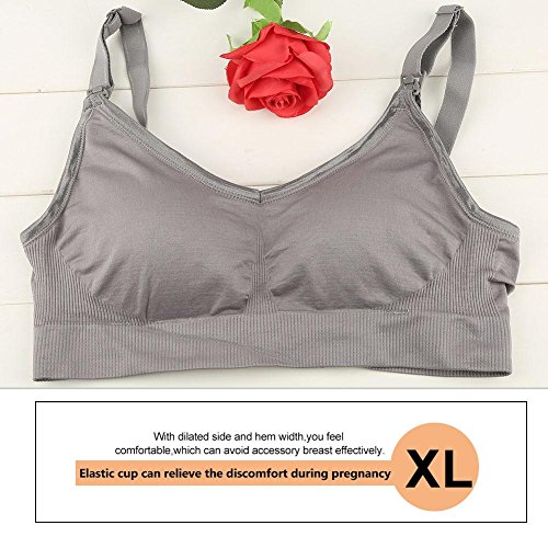 ワイヤレスフリーマタニティ看護ブラスコットンパッド入りフルカバレッジスポーツブラ授乳妊婦服授乳服(XL-グレー)