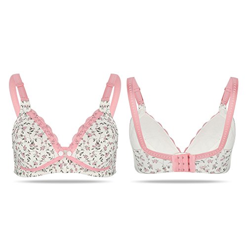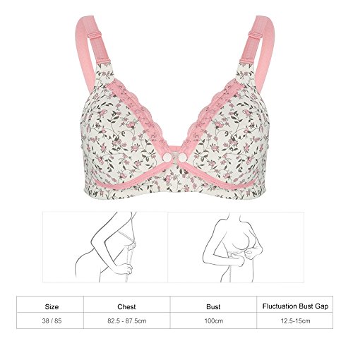 花のレースブラジャーの出産看護のブラジャーの綿のフロントオープン授乳妊婦服(40/90-ピンク)