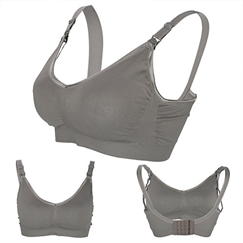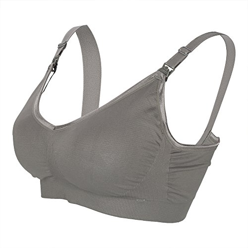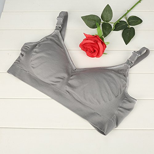 看護ブラジャーL/XL妊婦シームレスなブラフワイヤーフリー授乳期、妊娠中の女性のための夏服(L-グレー)