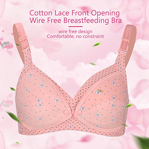 コットンマタニティ看護ブラジャー妊娠中の女性の服のためのブラジャーエクステンダーを持つフロントオープン授乳ブラジャー(40/90-ピンク)
