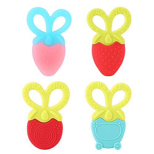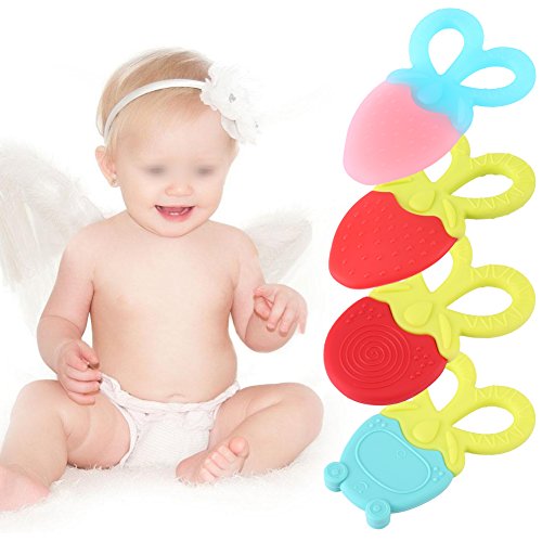 歯がため 果物 哺乳 赤ちゃん (3ヶ月から対象)可愛い シリコン製 食品グレード 噛む おしゃぶり 不安・ストレス解消 乳歯の成長をサポート 識別力を養う 脳を活性化させる (ピンクイチゴ)