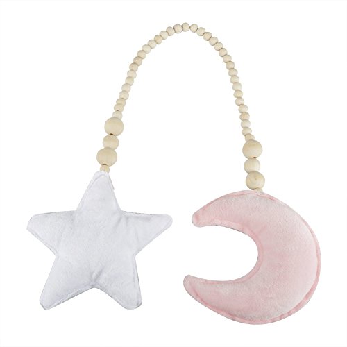 ベビー キッズ おもちゃ 吊りペンダント スター&ムーンオーナメント 木製 ビーズストリングぶら下げ DIY オーナメント ベビー キッズベッド テントルーム 装飾(ピンクムーン&ホワイトスター)