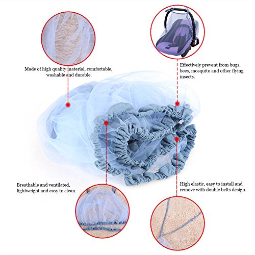 ベビーカー 虫よけ カバー 蚊帳 サンシェード ネットメッシュの伸縮タイプ 新生児~3歳ベビーカー (スカイブルー)
