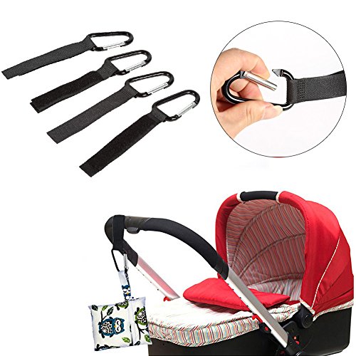 4本のベビーベビーカーの袋のクリップフック、新生児の幼児の幼児のプッシャーのバギークリップCarabinerおむつの袋のおもちゃのハンガー