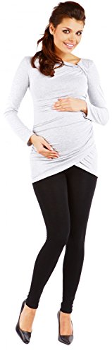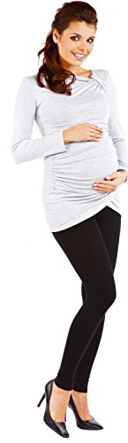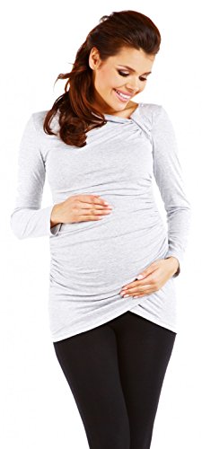 Zeta Villeプリーツ長袖の女性のマタニティストレッチチュニックトップ941c (グレーメランジ, 15)