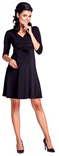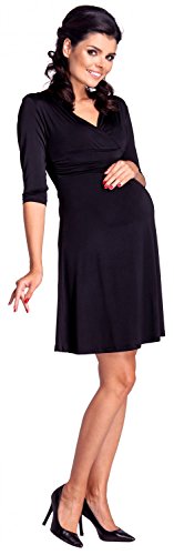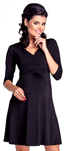 Zeta Ville 女性のマタニティプリーツAラインシルクドレス - 3/4スリーブ 946c (黒, Medium, 2XL)
