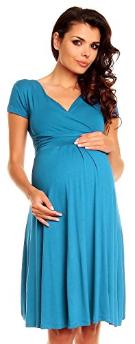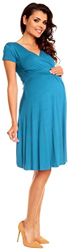 Zeta Ville - 婦人向け 産科 ラップ Vネック 夏 ドレス - ショート 袖 - 108c (シアン, JA 21, 4XL)