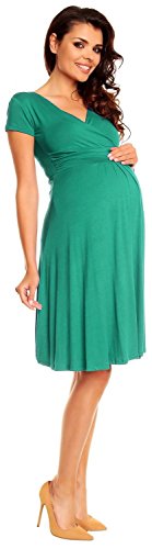 Zeta Ville - 婦人向け 産科 ラップ Vネック 夏 ドレス - ショート 袖 - 108c (ティール, JA 9, S)