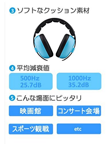 可愛くて機能的な、子供用ヘッドフォンが登場 ・子どもの耳は大人よりもとっても敏感、大切なお子様の耳を大きな音からしっかり守りましょう! ・85デシベル以上の音量に8時間以上さらされる場合、耳の保護が必要と言われています。 ・映画館やコンサート、スポーツ観戦など大音量が気になる時の必須アイテム ・聴覚過敏のお子様にもオススメ ・耳あての部分はソフトなクッション素材で、耳周りをぴったり覆い、遮音性もアップしています。 ※ベビー用は締め付け感がソフトにできています ※耳に入る音を31デシベル減少 ※平均減衰値:500Hz、25.7dB ※平均減衰値:1000Hz、35.2dB ※米国規格協会の定める防音器具の基準に適合。 ※欧州の統一規格であるEN規格の定める防音器具・防護衣類等の基準に適合。