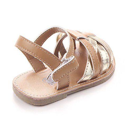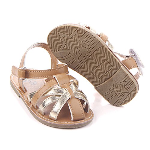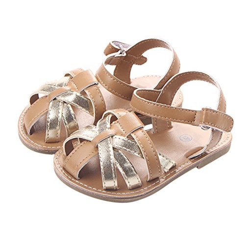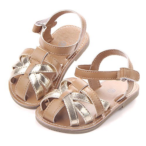 Zhaozheキッズ サンダル 女の子 ベビー シューズ 学步靴 やわらか はきやすい マジックテープ 幼児靴 滑り止め おでかけ フォーマルに活躍 (11CM, ゴールド)