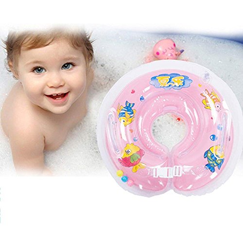 Zhaozhe 浮輪 首浮き輪 ベビー お風呂 バランス トレーニング 水遊び 入浴 調節ベルト (花形, ピンク)