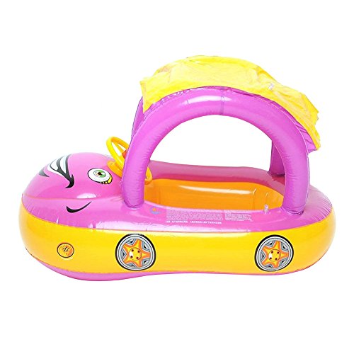 Zhaozhe浮き輪 足入れ式 ベビーボート 車型 屋根付き 日焼け予防 水泳補助具 赤ちゃん 水遊び プール 海用