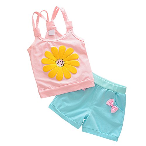 Zhaozhe 子供服 Tシャツ タンクトップ&パンツ 上下セット ヒマワリ柄 可愛い 女の子 赤ちゃん 夏 カジュアル