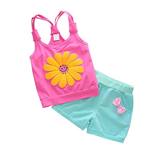 Zhaozhe 子供服 Tシャツ タンクトップ&パンツ 上下セット ヒマワリ柄 可愛い 女の子 赤ちゃん 夏 カジュアル