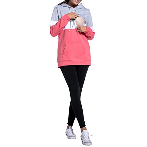 マタニティ 目に見えない授乳 授乳服 フード付きの トップス レディース 妊婦服 - 春夏秋冬 長袖 授乳口 付 レイヤード Maternity T-Shirt [Zhhlinyuan]