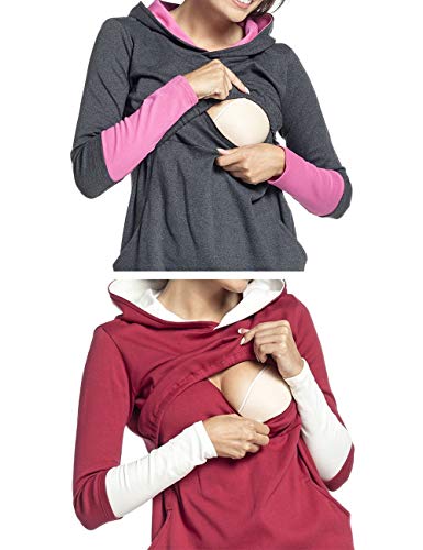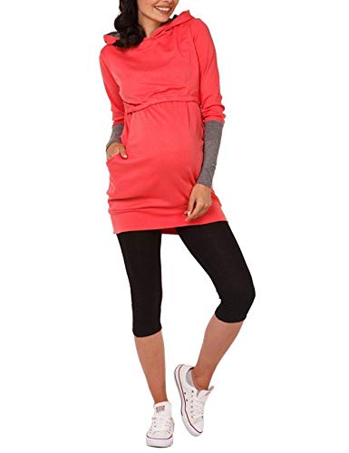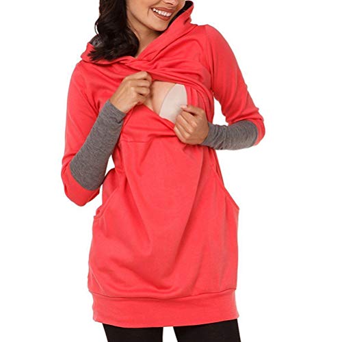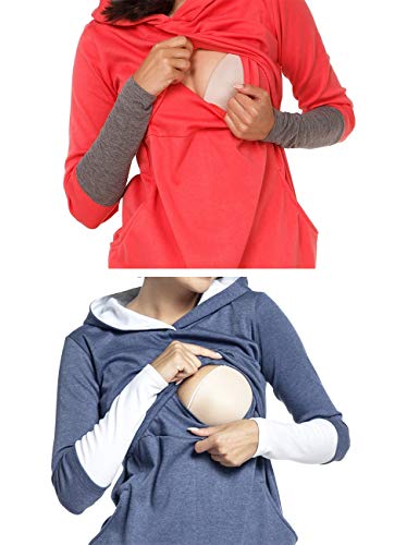 妊婦服 マタニティー 授乳服 Maternity T-Shirt 前開き 授乳口付 授乳 Tシャツ - レディース 長袖 授乳口 付 産前 産後 レイヤード フード付きの 綿 トップス [Zhhlinyuan]