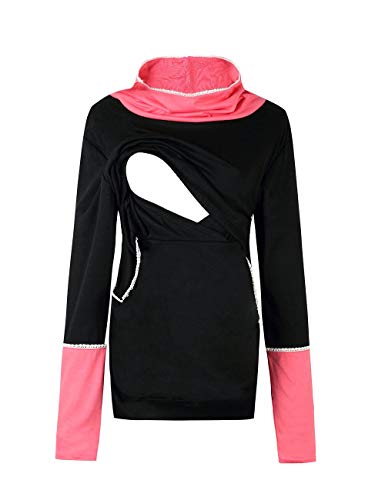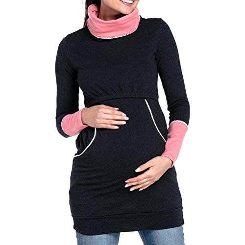 Maternity T-Shirt 授乳服 授乳口付き マタニティトップス - レディース 長袖 レイヤード 妊婦服 トップス 高い襟 [Zhhlinyuan]