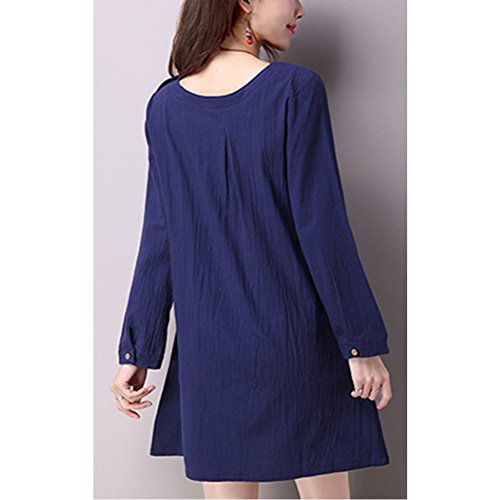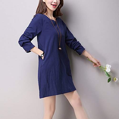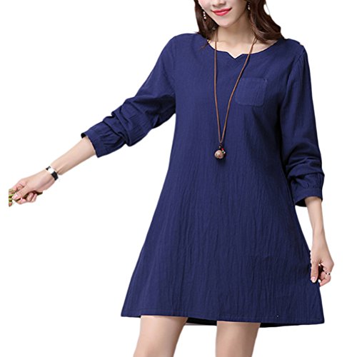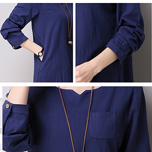 Zhhlinyuan Women Retro Chinese Style PlusSize Loose Long Sleeve Linen Dress Maternity ドレス