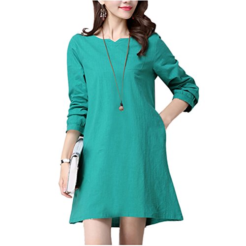 Zhhlinyuan Women Retro Chinese Style PlusSize Loose Long Sleeve Linen Dress Maternity ドレス