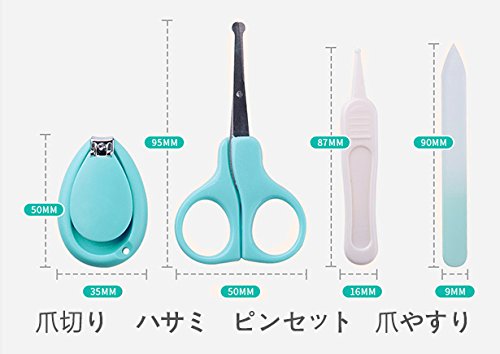 - 【セット内容・付属品】 新生児用ハサミ、クリップ型爪切り、爪やすり、鼻用ピンセット、収納ケース。