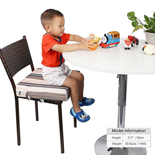 Zicac 座布団 高さが変わるクッション 食事用 4色 取り外し便利 麻布+密度の高いスポンジ 子供用シートクッション 様々な椅子に適用です 2歳以上キッズにご利用可能 (ストライプ2)