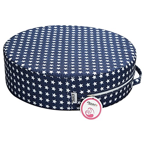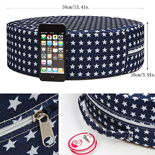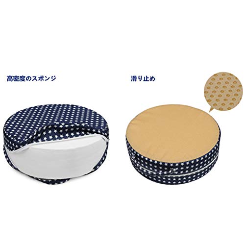 Zicac 座布団 高さが変わるクッション 食事用 5色 円形 星柄 取り外し便利 麻布+密度の高いスポンジ 子供用シートクッション 様々な椅子に適用です 2歳以上キッズにご利用可能 (34x34cm, ブルー)