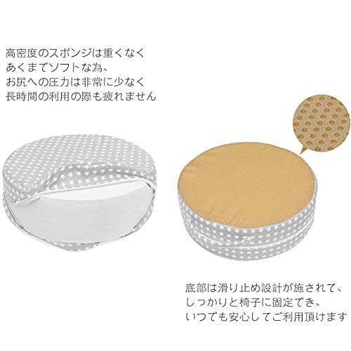 - 2歳以上の自分でご飯を食べたいお子様ために作られた、可愛らしい円形デザインの椅子用シートクッションです。お洒落で持ち運びも楽々ですので、椅子用としてだけではなく、外出先などで座布団としても使って頂いてもいいと思いますよ♪