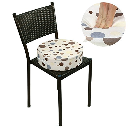 Zicac 座布団 高さが変わるクッション 食事用 4色 円形 水玉柄 取り外し便利 麻布+密度の高いスポンジ 子供用シートクッション 様々な椅子に適用です 2歳以上キッズにご利用可能 (サイズ1, 水玉1)