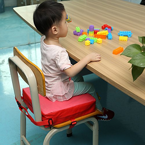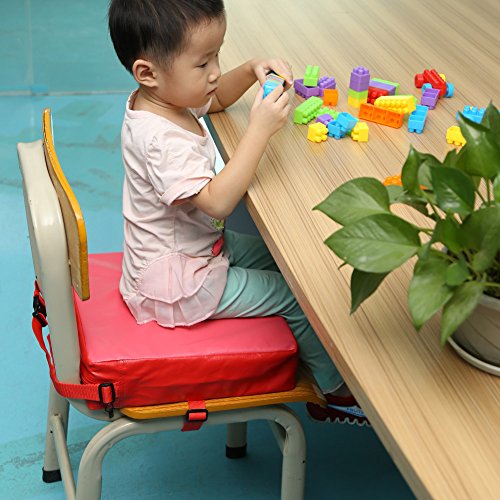 Zicac 座布団 高さが変わるクッション 食事用 3色 取り外し便利 合成レザー+密度の高いスポンジ 子供用シートクッション 様々な椅子に適用です 2歳以上キッズにご利用可能 綺麗 (レッド表面)