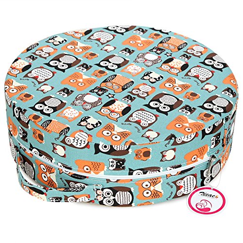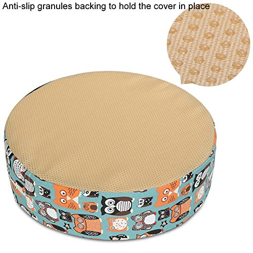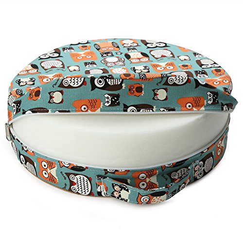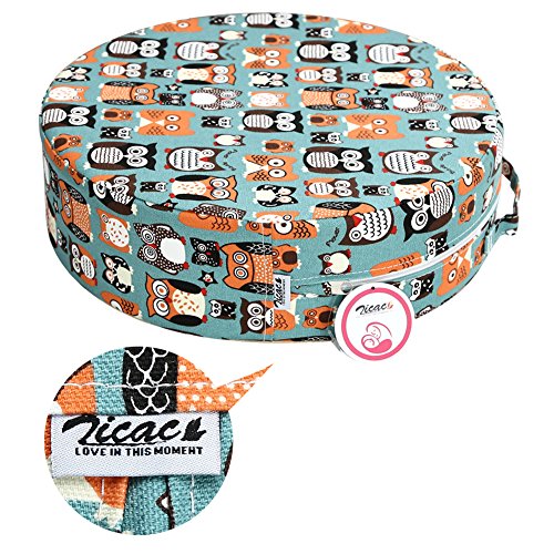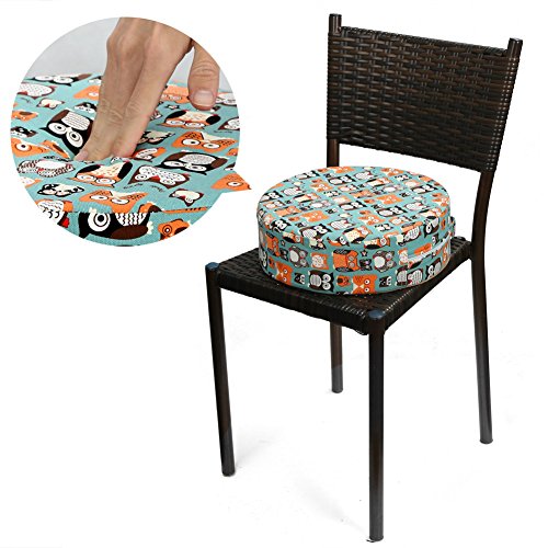 Zicac 座布団 高さが変わるクッション 食事用 円形 フクロウ柄 可愛い 取り外し便利 麻布+密度の高いスポンジ 子供用シートクッション 様々な椅子に適用です 2歳以上キッズにご利用可能 (円形, ブルー)