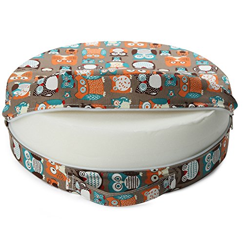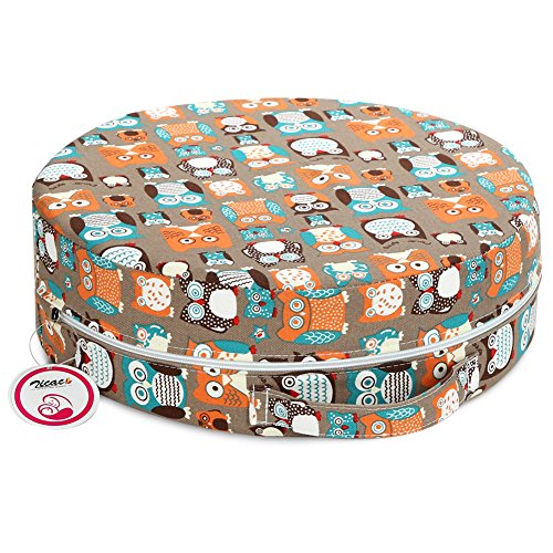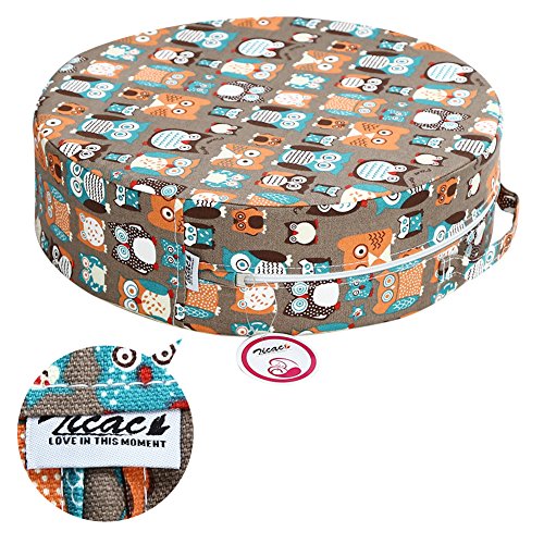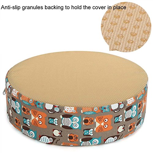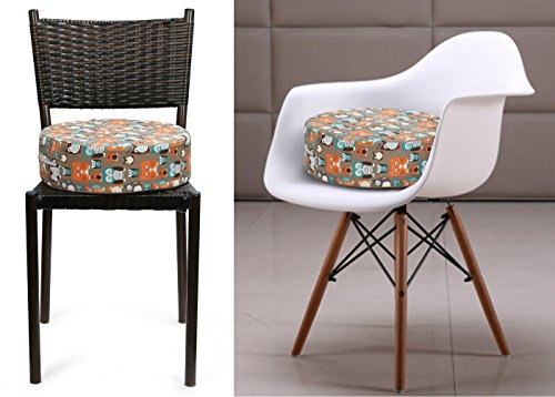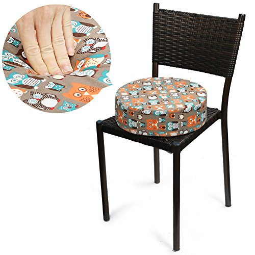 Zicac 座布団 高さが変わるクッション 食事用 円形 フクロウ柄 可愛い 取り外し便利 麻布+密度の高いスポンジ 子供用シートクッション 様々な椅子に適用です 2歳以上キッズにご利用可能 (円形, コーヒー)