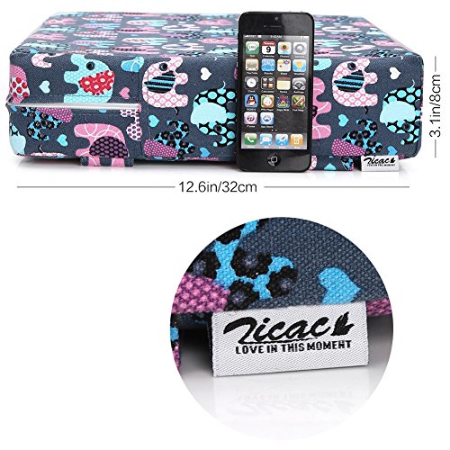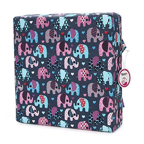 Zicac 座布団 高さが変わるクッション 可愛い柄 食事用 3色 取り外し便利 60%コットン+40%ポリエステル+密度の高いスポンジ 子供用シートクッション 32x32x8cm 2歳以上キッズにご利用可能 (象)