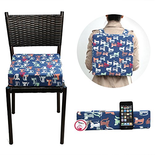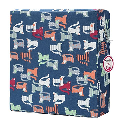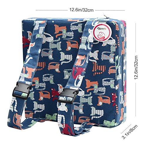 Zicac 座布団 高さが変わるクッション 可愛い柄 食事用 3色 取り外し便利 60%コットン+40%ポリエステル+密度の高いスポンジ 子供用シートクッション 32x32x8cm 2歳以上キッズにご利用可能 (猫)