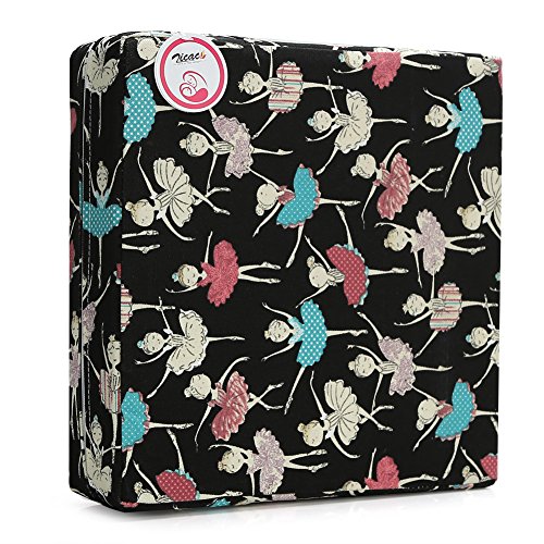 Zicac 座布団 高さが変わるクッション 可愛い柄 食事用 3色 取り外し便利 60%コットン+40%ポリエステル+密度の高いスポンジ 子供用シートクッション 32x32x8cm 2歳以上キッズにご利用可能 (女の子)