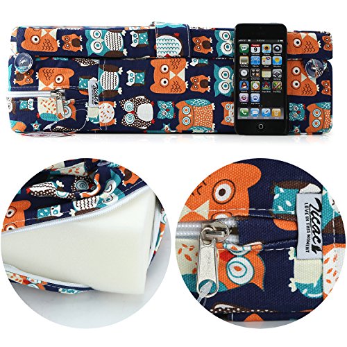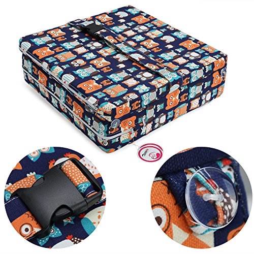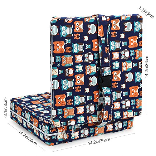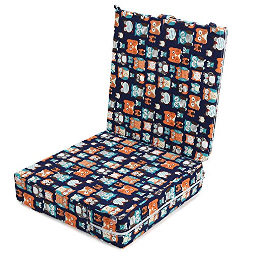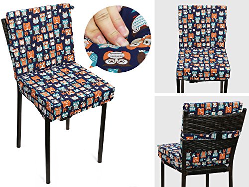 Zicac 座布団 高さが変わるクッション 食事用 フクロウ柄 可愛い 取り外し便利 麻布+密度の高いスポンジ 子供用シートクッション 様々な椅子に適用です 2歳以上キッズにご利用可能 (サイズ1, ダークブルー)