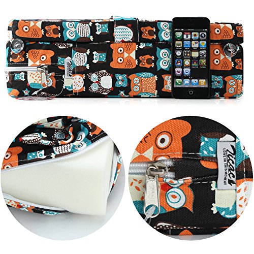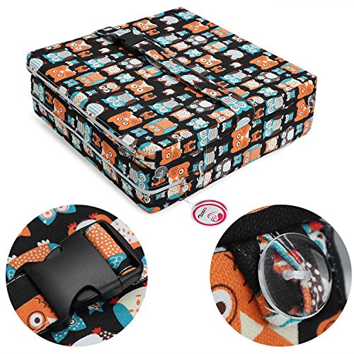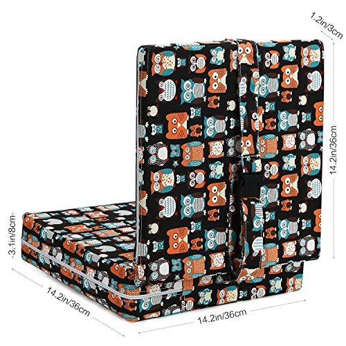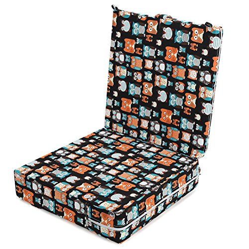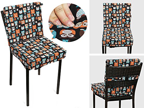 Zicac 座布団 高さが変わるクッション 食事用 フクロウ柄 可愛い 取り外し便利 麻布+密度の高いスポンジ 子供用シートクッション 様々な椅子に適用です 2歳以上キッズにご利用可能 (サイズ1, ブラック)