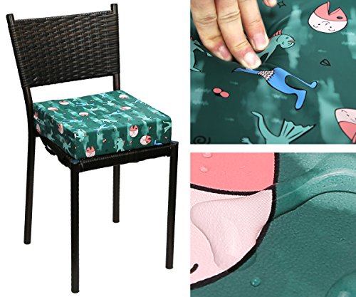 Zicac 座布団 高さが変わるクッション 食事用 2色 可愛い柄 取り外し便利 PU+密度の高いスポンジ 子供用シートクッション 様々な椅子に適用です 2歳以上キッズにご利用可能 綺麗 (サイズ1, 人魚)