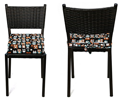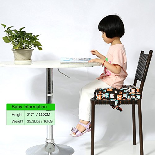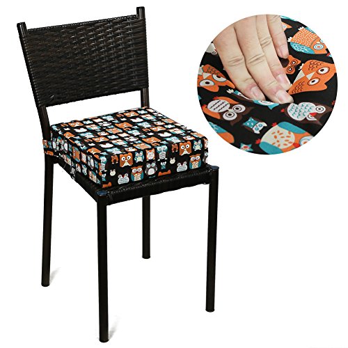 Zicac 座布団 高さが変わるクッション 食事用 4色 可愛いフクロウ柄 取り外し便利 コットン+密度の高いスポンジ 子供用シートクッション 様々な椅子に適用です 2歳以上キッズにご利用可能 (ブラック)