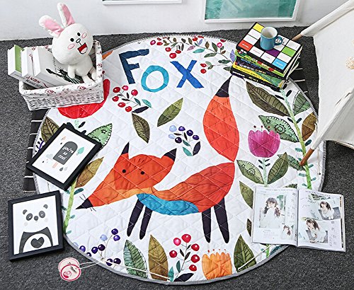 Zicac おもちゃ収納袋 ベビープレイマット 便利グッズ ストレージマット 収納マット 2in1 お出かけに便利 可愛いデザイン お片付けかんたん レゴ収納 (143cm, キツネ(滑り止め・防水))
