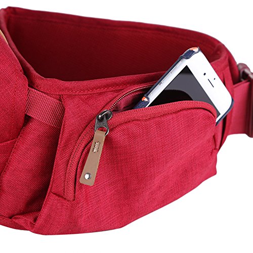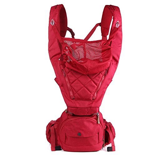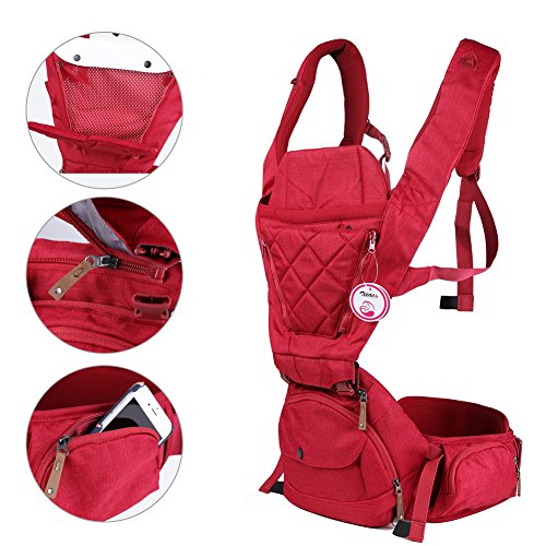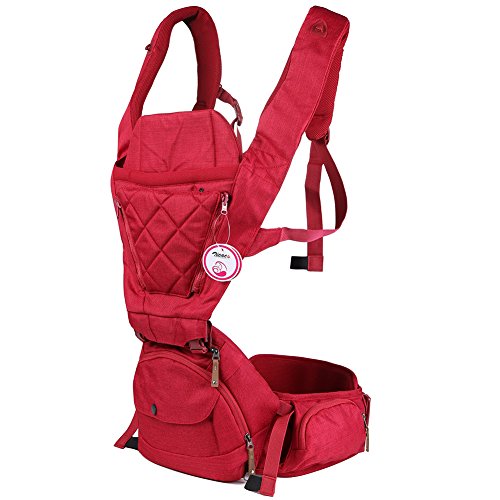 Zicac ウエストキャリー ヒップシート ベビー 夏&冬使用可能 ヒップシートキャリア 抱っこ紐 ベビースリング 麻布 3色選択可能 新生児3ヶ月から36ヶ月まで使える 最大115cm調整可能ウェストベスト ウェストベルト (レッド)
