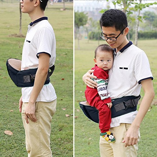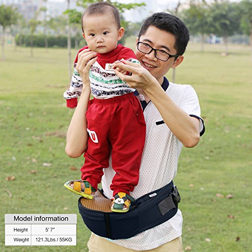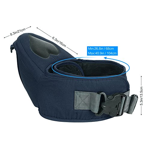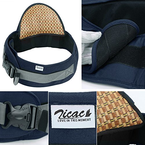 Zicac ヒップシート 取り外し可能竹マット付き ベビー 新生児4ヶ月から24ヶ月まで使える ウェストベルト 3色 (ダークブルー)
