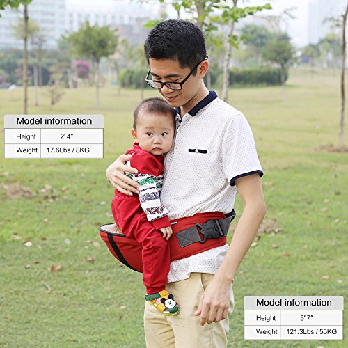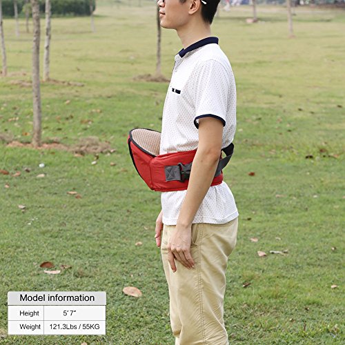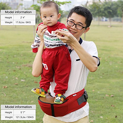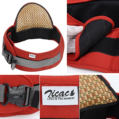 Zicac ヒップシート 取り外し可能竹マット付き ベビー 新生児4ヶ月から24ヶ月まで使える ウェストベルト 3色 (レッド)