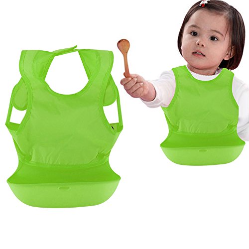 Zicac 赤ちゃん・ベビーエプロン お食事 スタイ ベスト式 4色選択可能 よだれかけ 防水 ナイロン+シリコン 収納に便利 洗濯機で洗えます (グリーン)