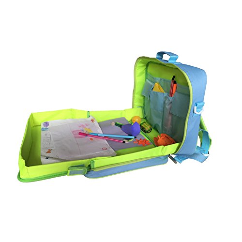 Zicac キッズ用出掛けバッグ 子供 多機能 伸縮可能のお盆付き おもちゃ収納可能 写生用バッグ 旅行・写生・キャンプ適用 車内でも利用できます (ブルー)