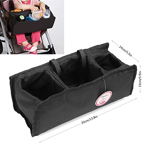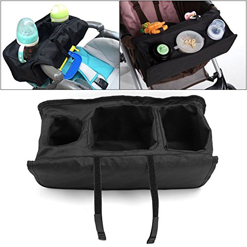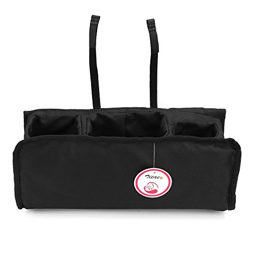Zicac ベビーカー収納ポッチ マザーズバッグ おもちゃ掛ける紐有り オックスフォード 哺乳瓶収納 多機能小物入れ 出掛けに便利 ドリンクホルダー (35x14x15cm, ブラック)