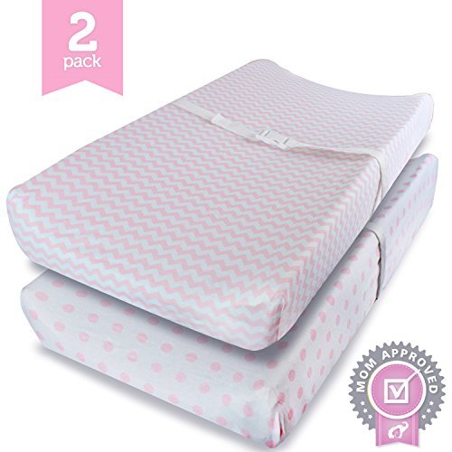 INCREDIBLY SOFT JERSEY KNIT COTTON Our super soft changing pad cover set is made from 100% jersey knitted cotton, giving you a soft, comfortable surface to change your baby on.;FASHIONABLE EXCELLENCE Our super soft changing pad sheets come in white and grey with chevron and polka dot designs to fit any style. Our gender neutral, unisex designs are perfect baby shower gifts for boys and girls!;UNIVERSAL FIT DESIGN Our 34 x 11 x 6 inch cover will fit most changing pads up to 16 inch x 32 inch and safety straps. Perfect for any diaper changing table station.;MACHINE WASHABLE Simply toss our soft covers in the wash to clean. Our 2 pack gives you an extra cover, so you'll always have a spare!;SATISFACTION GUARANTEED - At Ziggy Baby we are crazy about our customer satisfaction! If there is anything we can do to make your experience better or if you need to return an item, we can help you no questions asked. Add our 2 Pack Change Pad Cover Set to your cart today and order with confidence!