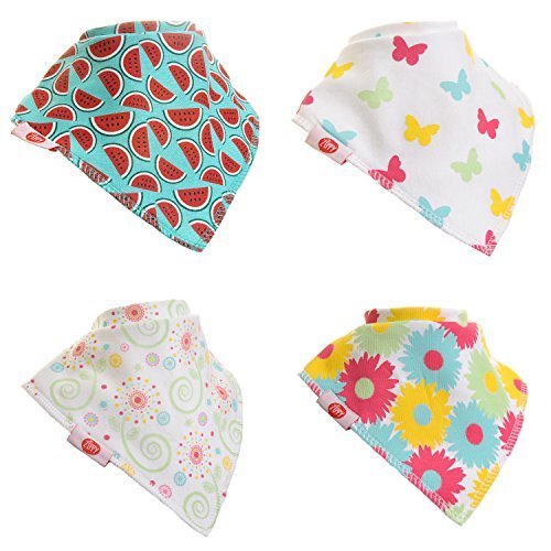 - Zippy Fun Baby and Toddler Bandana Bib - Absorbent 100% Cotton Front Dribble Bibs with Adjustable Straps (Gift Set) Girls Pink and Yellow
