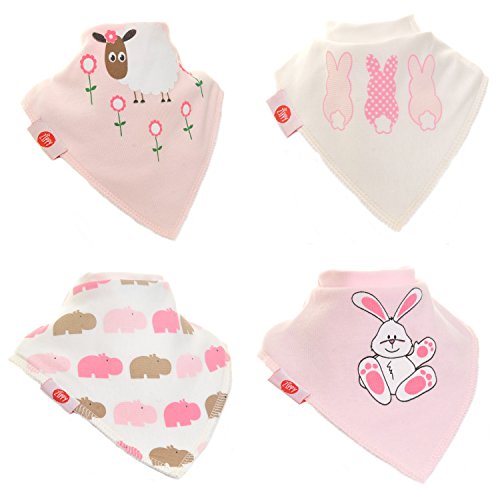 赤ちゃん(女児) 幼児用 バンダナスタイル よだれ掛け (かわいいピンクのセット 4枚パック)
