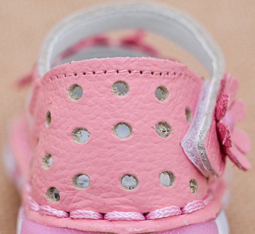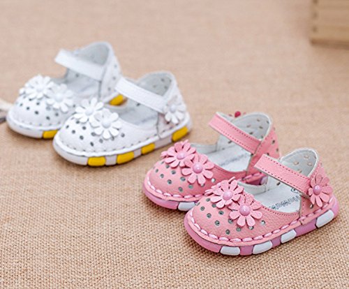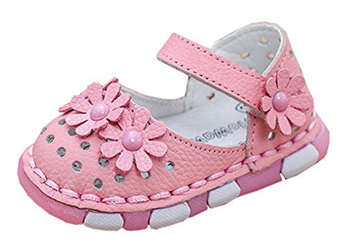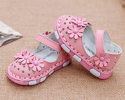 Ziweiba 女の子 お花モチーフ サンダル 革 子供靴 ベビーシューズ つま先保護 キッズ 女の子 女児用 マジックテープ 滑り止め おしゃれ ファーストシューズ (10.5cm(15), Bピンク)