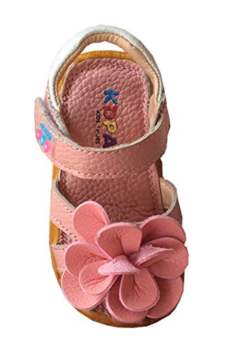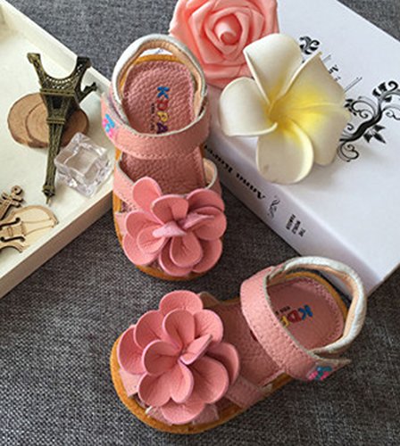 Ziweiba 女の子 お花モチーフ サンダル 革 子供靴 ベビーシューズ つま先保護 キッズ 女の子 女児用 マジックテープ 滑り止め おしゃれ ファーストシューズ (15.5cm(25), Bピンク)